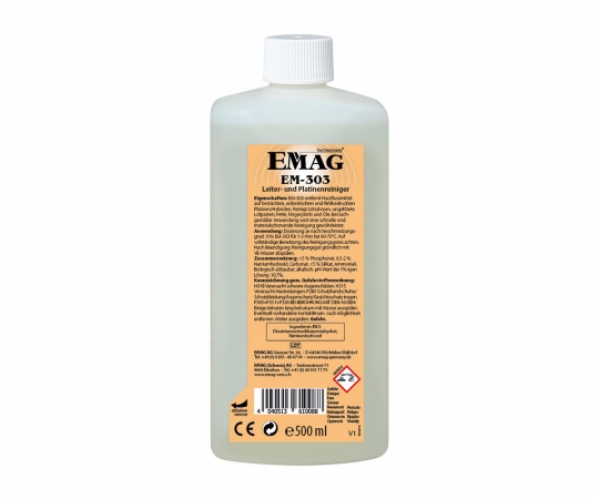 EM-303 entfernt Harzflussmittel auf bestückten, fehlbedruckten und unbestückten Platinen/Hybriden. Reinigt Lötrahmen, ungelötete Lötpasten, Fette, Fingerprints, Öle. EM-303 ist speziell für die Reinigung in EMAG-Ultraschallgeräten einzusetzen. Bei sachgemäßer Anwendung wird eine schnelle und Materialschonende Reinigung gewährleistet.