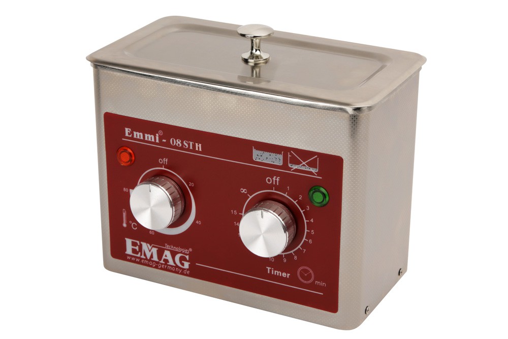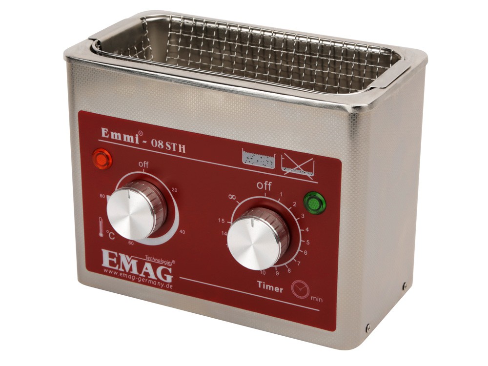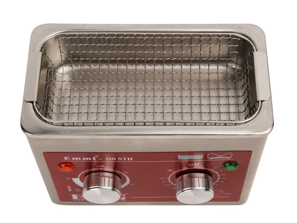 Das Emmi-08 STH mit einem Wanneninhalt von 0,8L überzeugt durch seine stabile Edelstahl-Schwingwanne und das Edelstahlgehäuse. Es ist ein zuverlässiges Ultraschallreinigungsgerät für die Bereiche Hörakustik, Heimanwendung, Labor, Optik und Nagel-/Tattoo-/Kosmetikstudios. Im Haushalt lassen sich im Ultraschallbad Brillen schonend und effektiv reinigen. Auch Hörgeräte, Prothesen, Schmuck und viele weitere Kunststoff-/Glas- und Edelstahlteile werden im Ultraschallreiniger gründlich sauber.