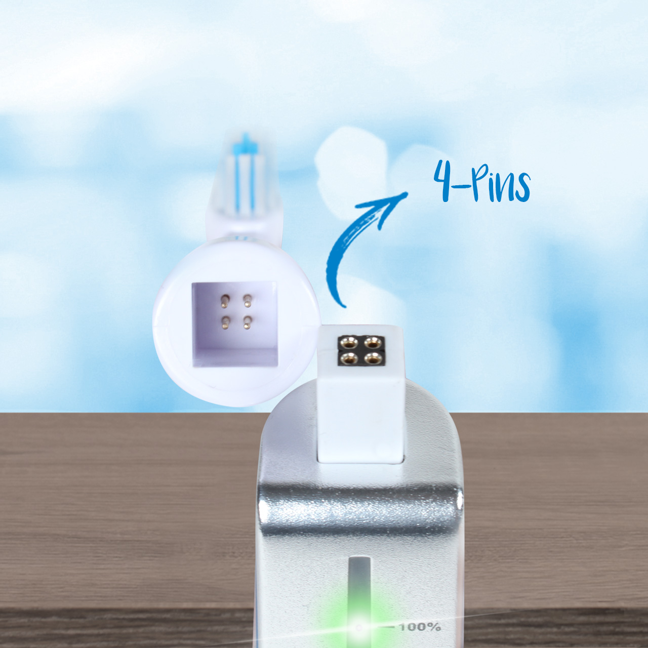 Die Ultraschall Aufsätze emmi-dent M2 Platinum enthalten im Bürstenkopf einen speziellen, weltweit patentierten, Piezo-Chip zur Generierung des 100% Original Emmi-dent Ultraschalls. In den Sockeln der emmi-dent M2 Platinum Ultraschall Aufsätze wurden 4 Kontaktstifte zur Verbindung mit dem emmi®-dent Platinum Handteil integriert. Diese Neuerung verhindert ein Verkanten beim Aufstecken und der Ultraschall Aufsatz lässt sich leichtgängig aufstecken und entfernen.
