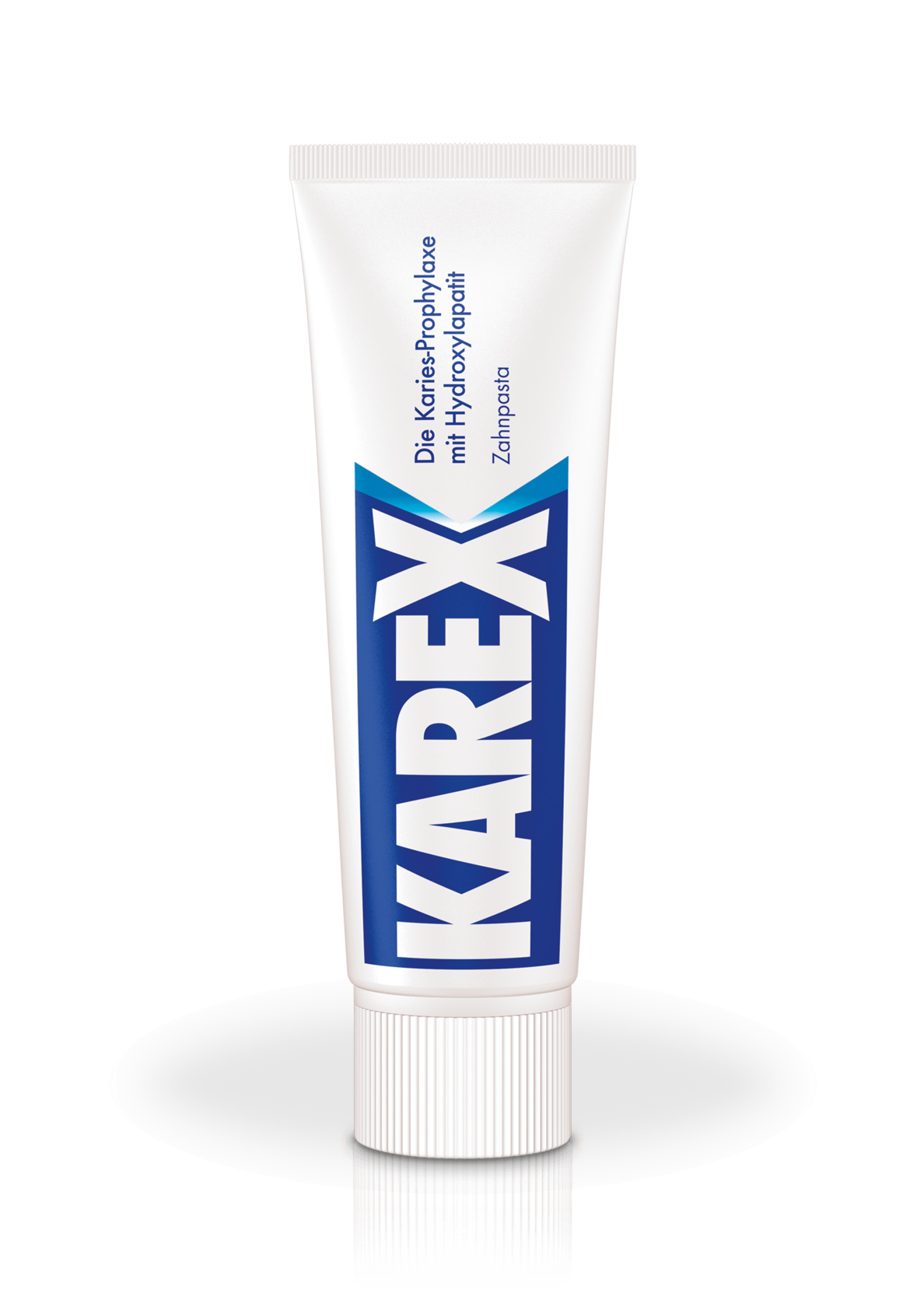 Der Karex-Wirkstoff Hydroxylapatit ist dem natürlichen Zahnschmelz nachgebildet. Durch das tägliche Zähneputzen mit Karex wird die Regeneration angegriffener Stellen im Zahnschmelz unterstützt und eine Schutzschicht ausgebildet. Zusätzlich wirkt Karex mit Zink und Xylit antimikrobiell und Zahnbelag wird vorgebeugt. Somit bietet Karex einen modernen Kariesschutz ohne Fluorid – auch bei Speichelmangel.