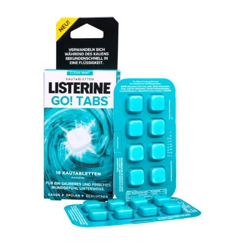 Die LISTERINE GO! Tabs verwandeln sich während des Kauens in eine Flüssigkeit und wirken sekundenschnell. Sie neutralisieren Gerüche und hinterlassen ein sauberes Mundgefühl wie nach dem Zähneputzen oder Mundspülen.