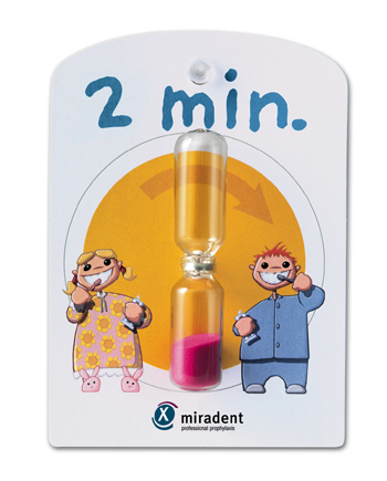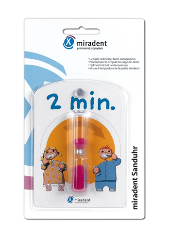 Diese praktische Uhr ist ideal zur Motivation der Zahnpflege bei Kindern. Die Sanduhr ist einfach abzulesen, und die Zahnputzzeit von 2 Minuten wird sicher eingehalten. Mit ihrem Saugnapf ist die miradent Sanduhr leicht auf allen glatten Flächen zu befestigen und unterstützt so die professionelle Zahnpflege von Kindheit an.