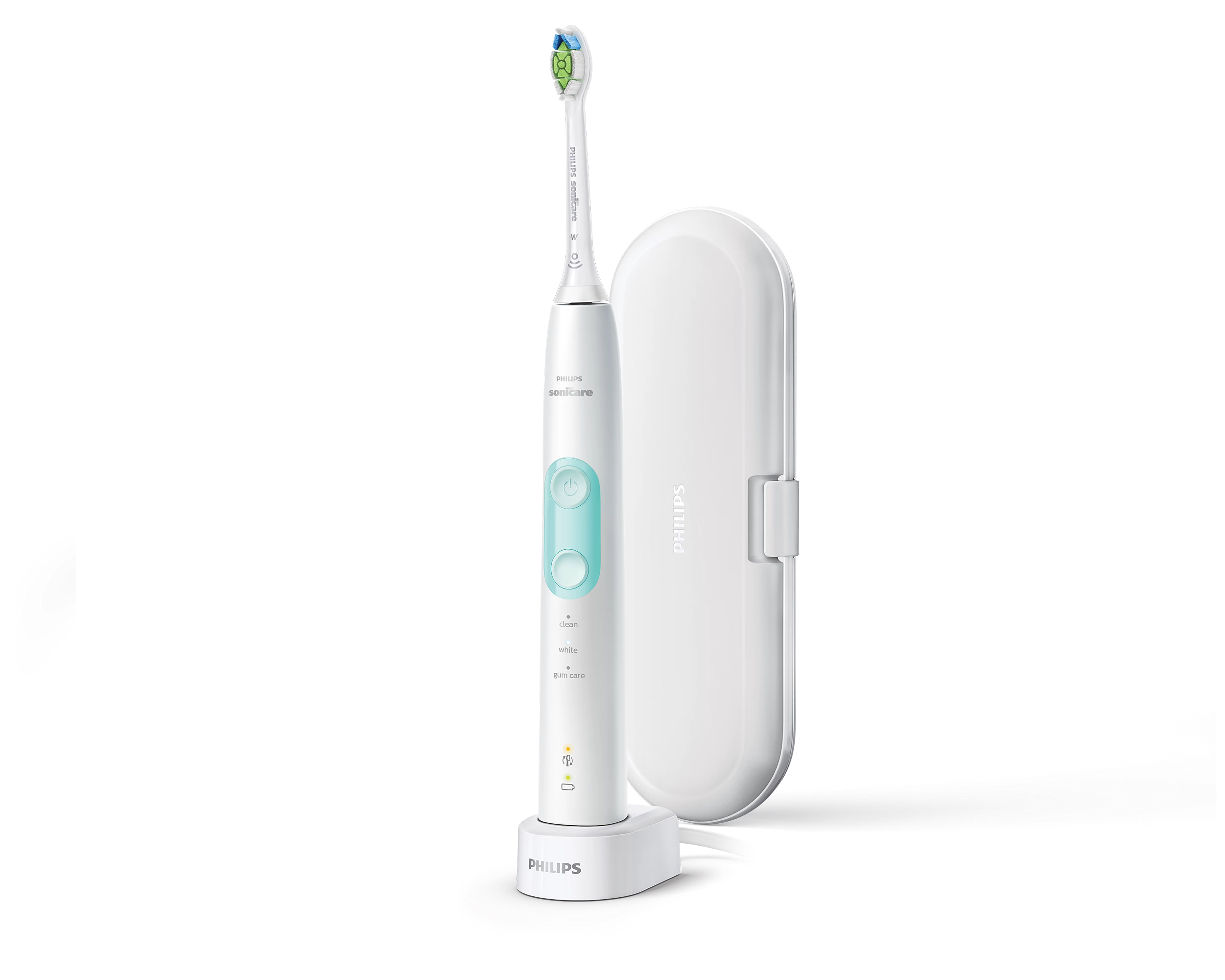 Die elektrische Zahnbürste ProtectiveClean 5100 mit innovativer Schalltechnologie gibt Ihnen die Gewissheit, dass effektive Reinigung auch sanft sein kann. Die fortschrittliche Philips Sonicare Schalltechnologie spült Wasser in die Zahnzwischenräume und löst und entfernt mit ihren Bürstenbewegungen Plaque für ein außergewöhnliches tägliches Reinigungsergebnis.