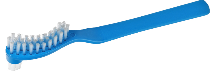 - der kleine Bürstenkopf wird zur Reinigung des Prothesenteils verwendet, der mit der Gingiva in Berührung kommt