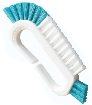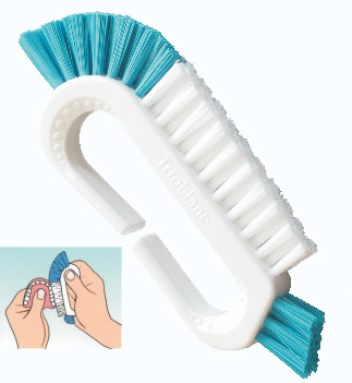 Durch ihren ergonomisch geformten Griff liegt die Trioblanc-Prothesenbürste stets sicher in Ihrer Hand. Sie können die Bürste mühelos in alle Richtungen bewegen.