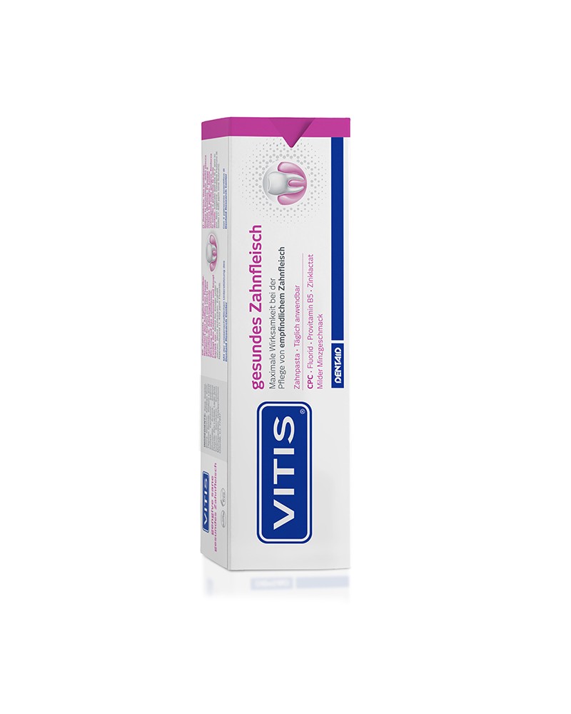 VITIS® gesundes Zahnfleisch Zahnpasta bietet die umfassendste tägliche Pflege zur Vorbeugung und Behandlung von Zahnfleischproblemen wie Entzündungen, Rötungen und Blutungen. Die innovative Zusammensetzung sorgt für eine optimale Mundhygiene, reduziert das Auftreten von Zahnfleischerkrankungen, schützt das Zahnfleisch und hält es gesund. Bei regelmäßiger Anwendung wird die Bildung von Zahnbelag verhindert und die Mundgesundheit geschützt.